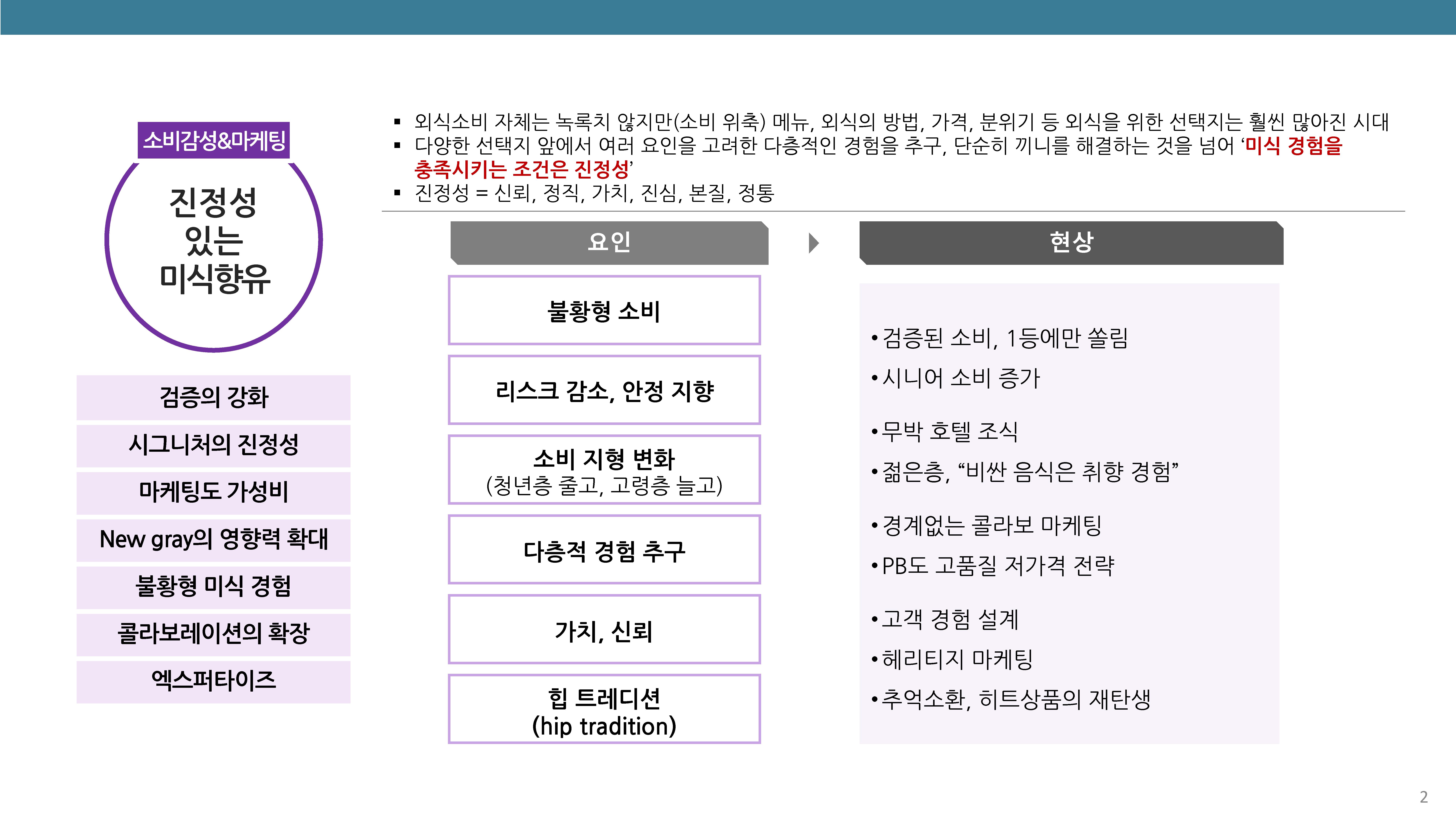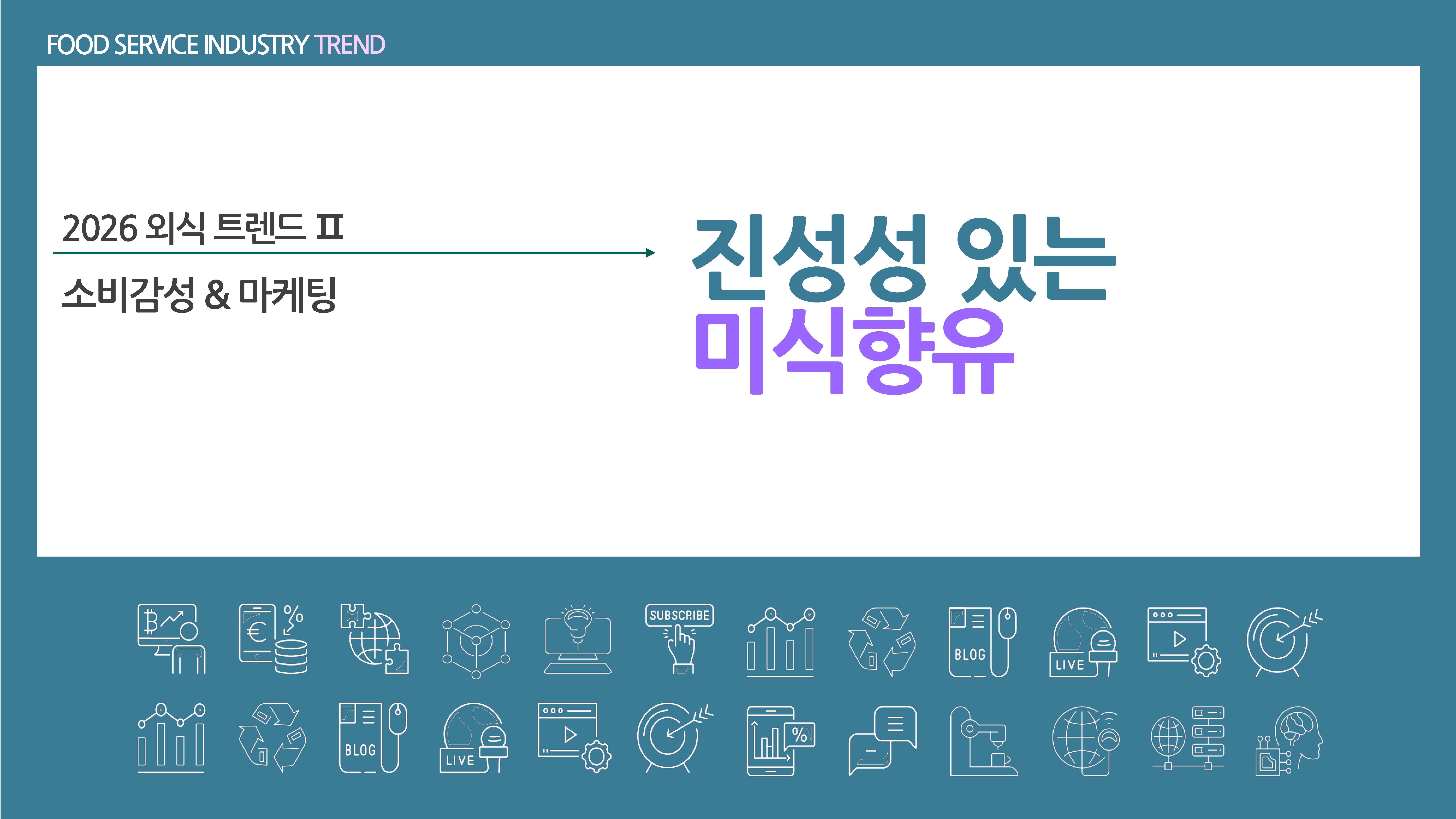 카드뉴스 국내정보 해외정보 식재료수급동향(KREI) 활용사례 2026 외식트렌드(진정성 있는 미식 향유) 관리자 2025-12-19 13:24 5 첨부파일 2026 외식트렌드(진정성 있는 미식 향유).pdf다운로드 이전글 2026 외식트렌드(서바이벌 다이닝) 다음글 2026 외식트렌드(마이 헬시 다이닝) 목록