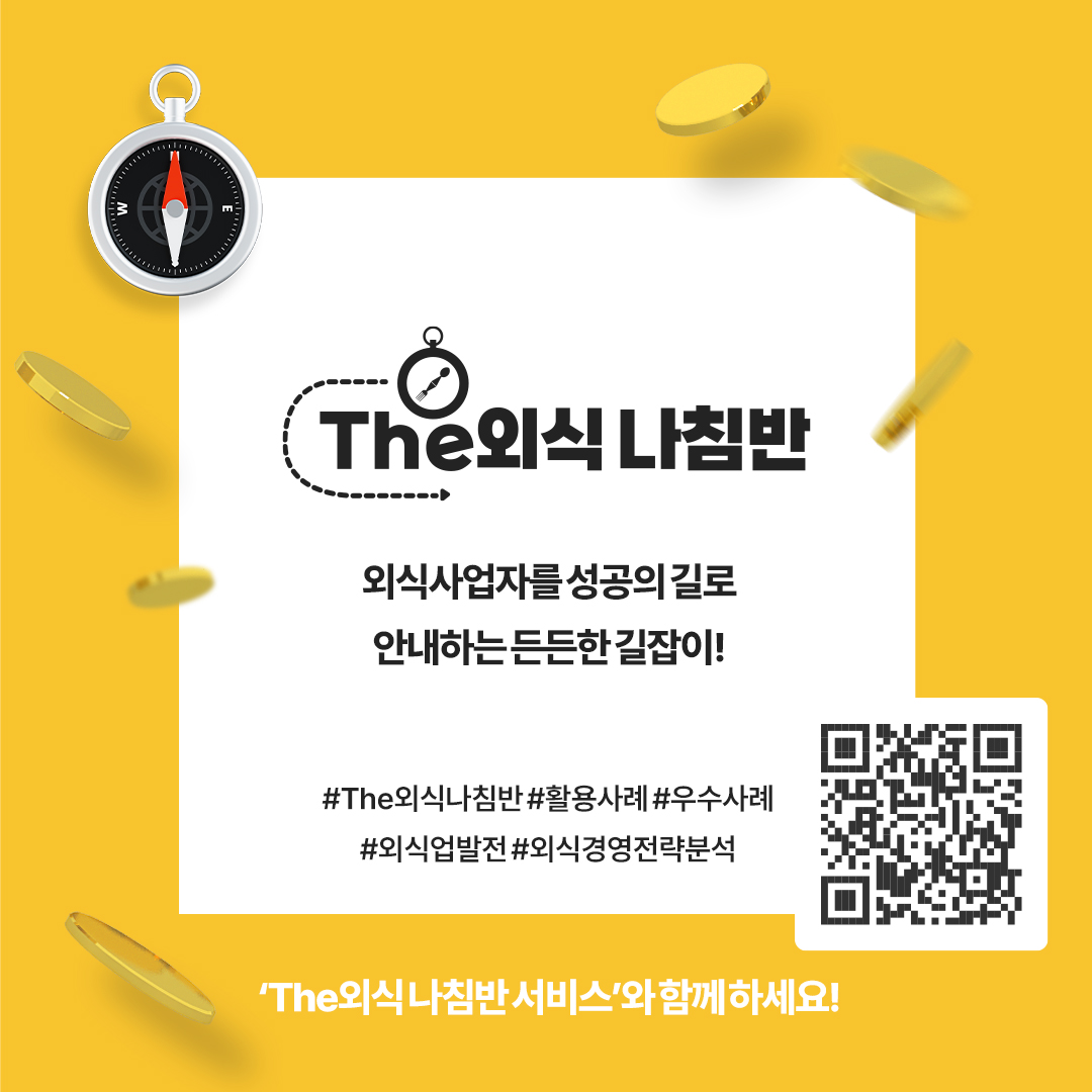 카드뉴스 국내정보 해외정보 식재료수급동향(KREI) 활용사례 [The외식 나침반] 우리 동네 외식업 현황 탐색하기 관리자 2025-10-28 09:53 11 현직 사장님부터 외식창업을 꿈꾸는 예비사장님 모두에게 유익한 외식경영전략분석정보 'The외식 나침반' 서비스! 아래 링크를 통해 직접 체험해 보세요! ↓↓↓↓↓↓↓↓ 서비스 바로가기 첨부파일 이전글 [The외식 나침반] 커피에 베이커리를 더하니 토요일 매출이 열렸다! 다음글 다음글이 없습니다 목록