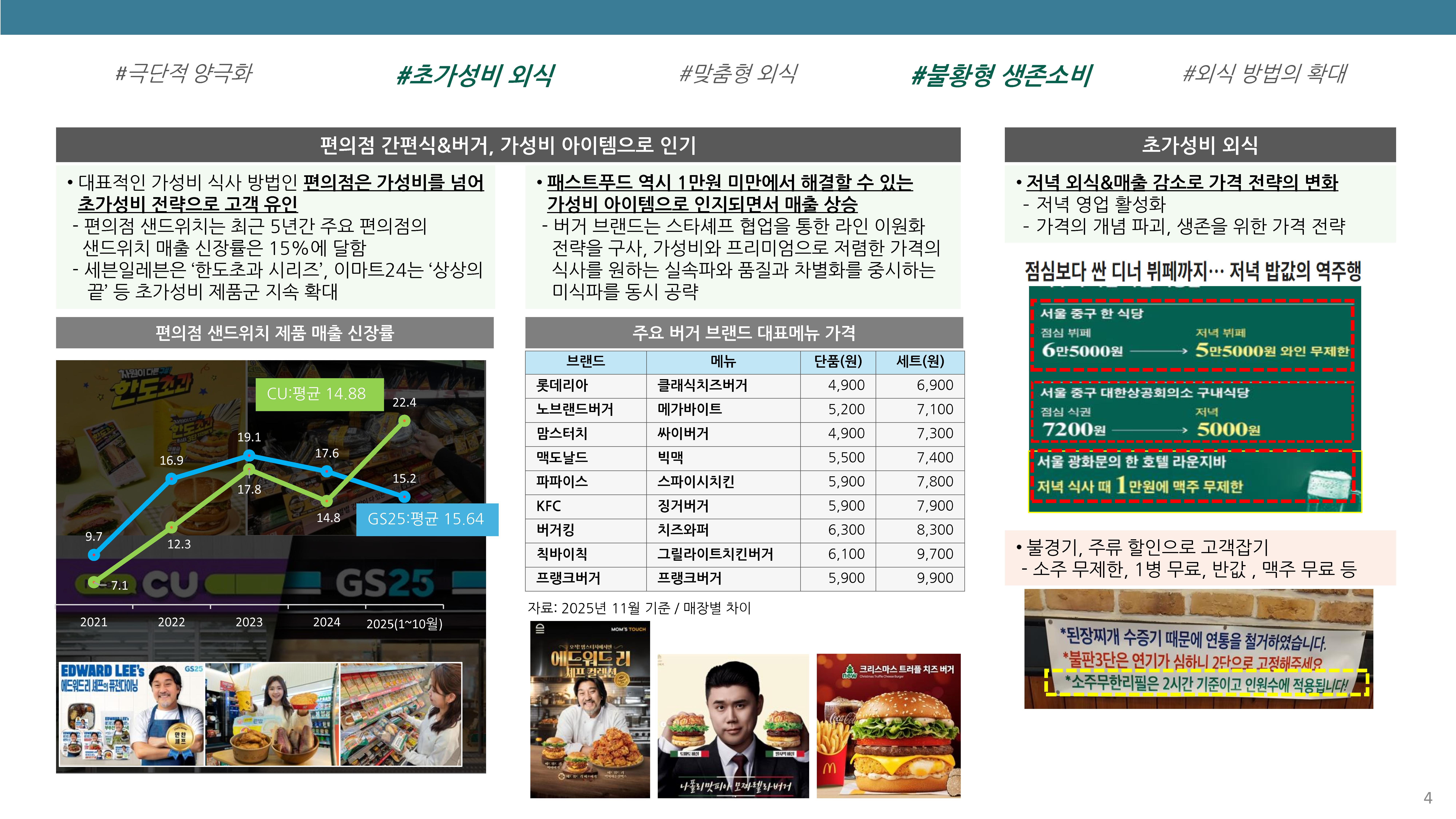 카드뉴스 국내정보 해외정보 식재료수급동향(KREI) 활용사례 2026 외식트렌드(서바이벌 다이닝) 관리자 2025-12-19 13:20 3 첨부파일 2026 외식트렌드(서바이벌다이닝).pdf다운로드 이전글 2026 외식트렌드(종합) 다음글 2026 외식트렌드(진정성 있는 미식 향유) 목록